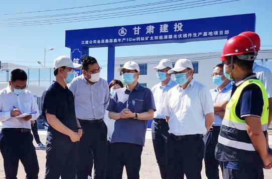 7月22日上午,金昌市委书记王钧带队赴甘肃三建装饰工程公司正在施工建设的年产1GW钙钛矿薄膜光伏组件生产基地项目调研指导工作。