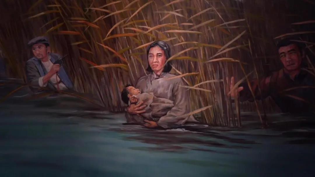 蔡畅、邓颖超、贺子珍、康克清、李坚真、刘英、李贞、刘伯钊……纪念馆的一面墙上,镌刻了4113个女红军的名字,而这些仅仅是女红军群体中的一部分,还有更多不知姓名、不知年龄的女红军战士,在战斗中英勇牺牲。馆内的另一面照片墙上,展示着数百位女红军的照片,她们中的在世者每离开一位,墙上的照片就由彩色变成黑白。数千名女红军战士,胸怀解放全天下劳苦人民的伟大理想,走上革命道路,以女性特有的坚韧肩负起革命的重担。她们是母亲,是妻子,是女儿,更是勇敢坚毅的革命战士。走进中国女红军纪念馆,也就走近了漫漫征途中的“她们”……在纪念馆里,有一座穿着红色毛衣的女红军雕塑,她是红军队伍里的一名卫生员。在翻雪山时,这位小战士身体单薄,同行的女战士将身上唯一一件红毛衣穿到她的身上。小姑娘开心地跑前跑后,打着快板把行进中的故事编成歌谣唱给大家听,在漫天风雪里给战士们送去欢笑和希望。她的红色身影活跃在寒冷的风雪中,像一团炽热的火,战士们亲切地喊她“小太阳”。在长征路上,很多同志倒下后就再也没能站起来。当战士们找到掉队的“小太阳”时,那件扎眼的红毛衣正盖在一个受伤的战士身上,而她只穿着一件单薄的军衣,静静地蜷缩在山腰的白雪中。在15岁的这一年,她的生命止步在风雪交加的雪山,至今没有人知道她的真实姓名。 这幅油画中的女红军叫张尚文,17岁投身革命,加入中国共产党,曾担任过红军宣传队队长。1934年,面对敌人对鄂豫皖革命根据地“清剿”, 张尚文和丈夫一起带领三个乡的留守队伍在根据地开展游击斗争,此时她的孩子还在襁褓之中。这年冬天的一个清晨,张尚文夫妇所在的队伍正在休整,搜山的敌人突向他们压来,张尚文随机应变,决定带战士们藏到老鸹山下的荷花塘里。荷花塘里铺满了大如斗笠的荷叶,可以躲过敌人的视线,张尚文抱着孩子,和战友们一起跳到了荷塘中。正值寒冬,塘里的水冰凉刺骨,孩子受到惊吓嚎啕大哭。敌人越来越近,如果孩子继续哭泣,哭声势必会引来敌人的注意,到那时战友们都将陷入危险。是牺牲孩子,还是牺牲游击队战友?张尚文满含泪水,做出了最艰难的选择,牺牲了自己的孩子……遍布纪念馆院落中的254根精神柱上,每根刻有三位女红军的名字、籍贯和出生年月,这是女红军纪念馆里独有的布展方式。女红军战士们追求独立、向往自由的妇女解放精神,不怕牺牲、勇往直前的彻底革命精神,互相帮助、团结战斗的阶级友爱精神,先人后己、公而忘私的共产主义精神,将会像这精神柱一样,永远屹立,代代相传。