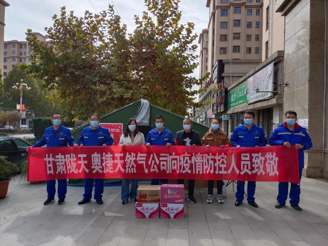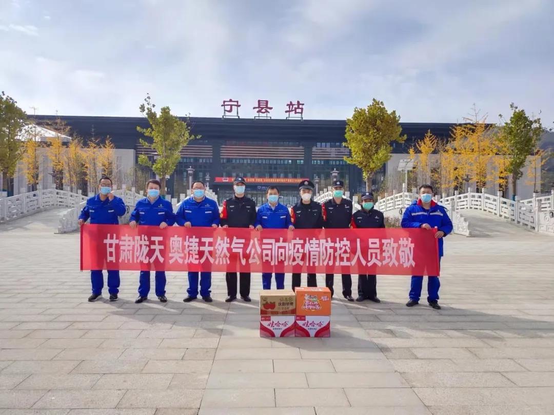 疫情面前显担当,危难时刻践初心。10月30日,在当前疫情防控的关键时期,金年会娱乐平台登录入口旗下甘肃陇天宁县奥捷天然气有限责任公司全体员工牢固树立“疫情就是命令,疫情就是责任”的信念,充分展现党员先锋模范带头作用。在做好疫情防控工作的同时,以饱满的热情为宁县抗疫一线的工作人员送去温暖。